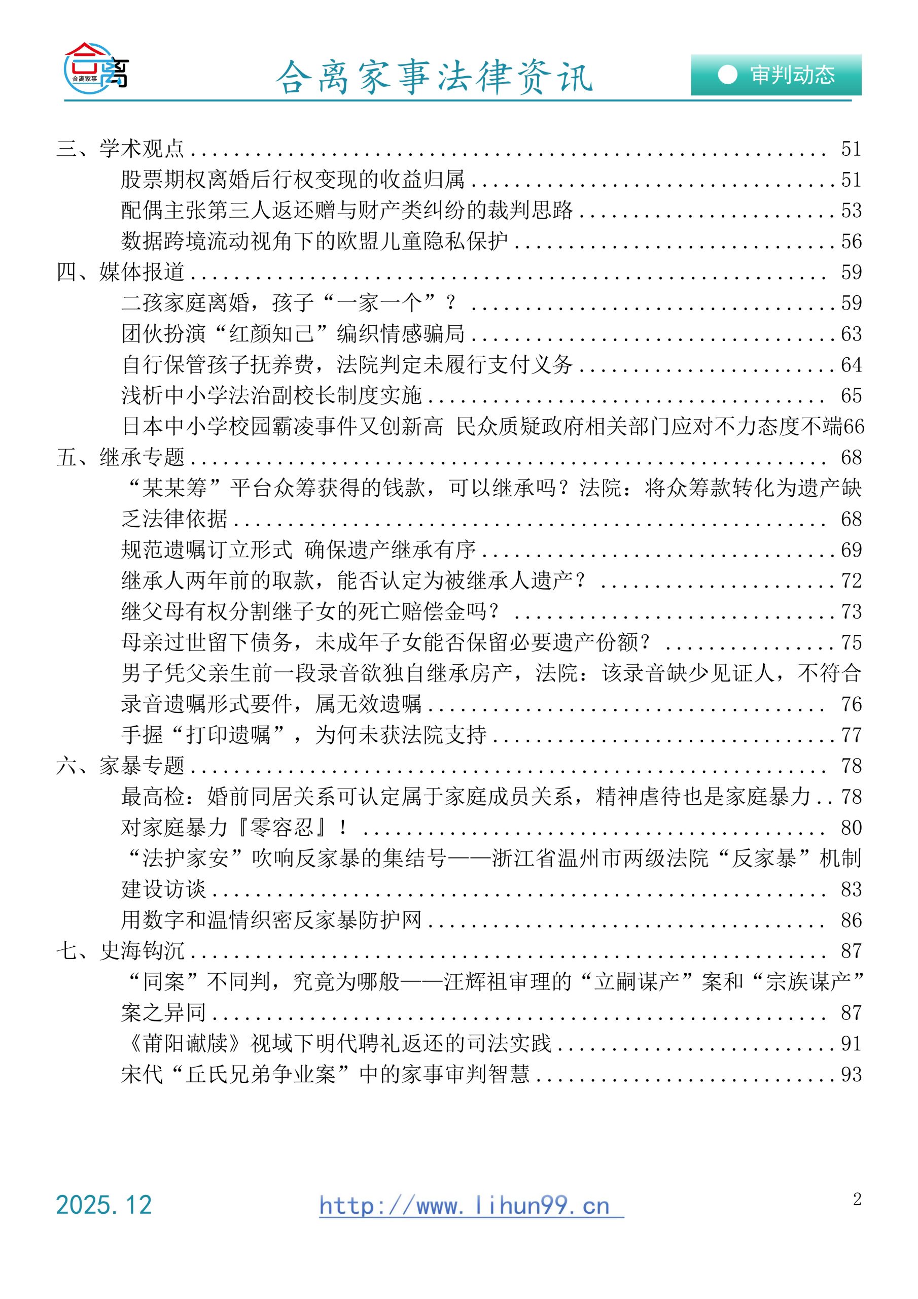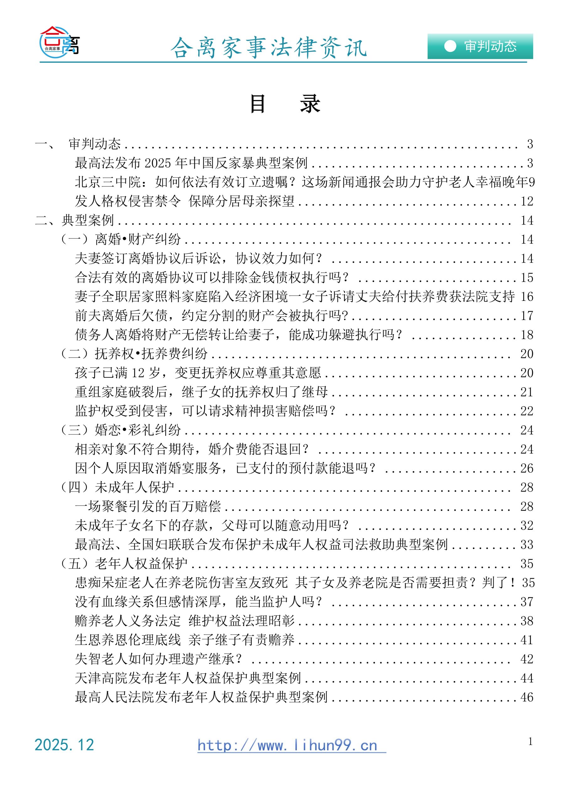 合离家事2025年第12期,关于婚姻·家庭·继承的法律资讯合集!合离家事法律资讯2025.12(免费赠阅)水印以下是本期目录,欢迎下载探讨。
