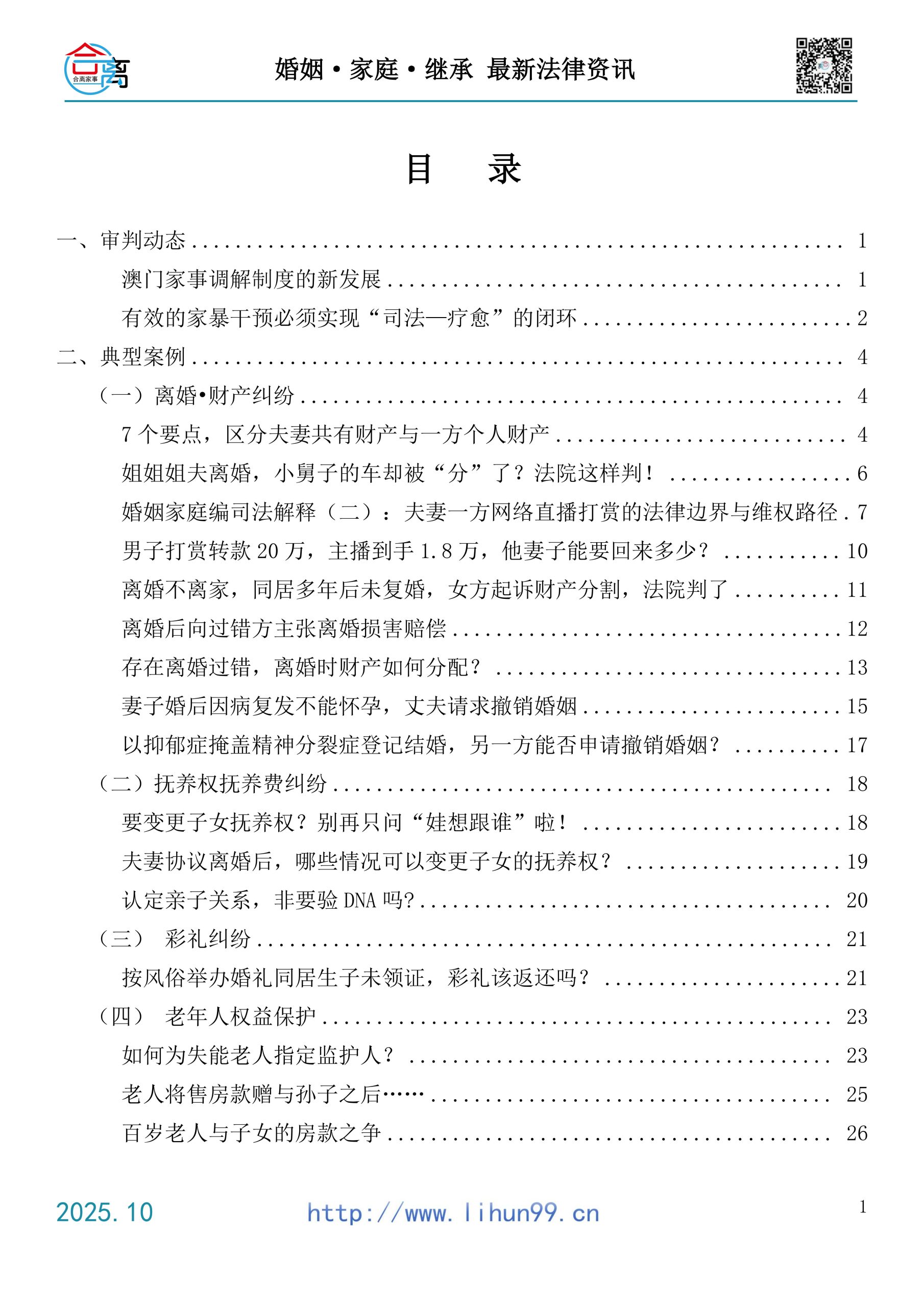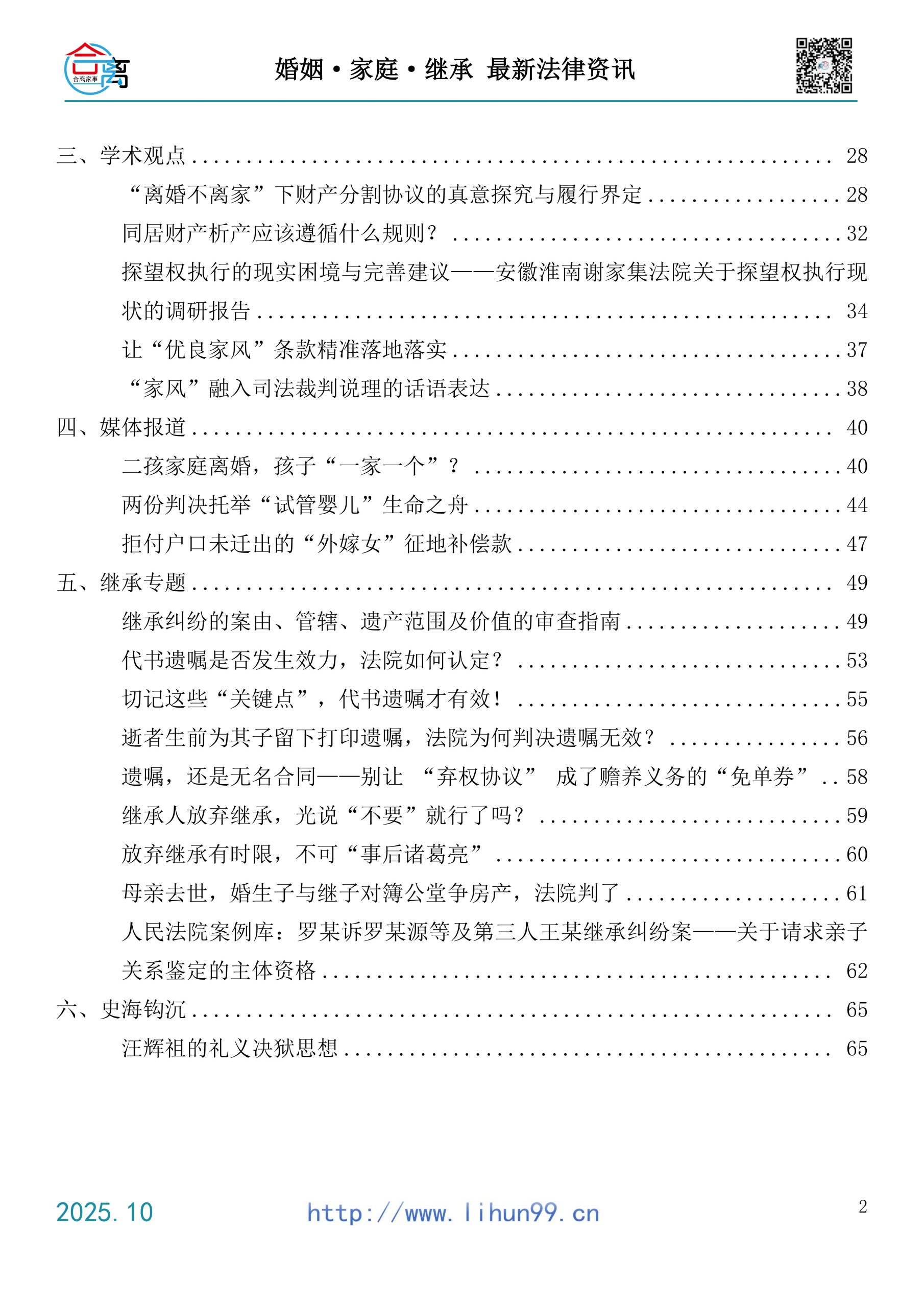 合离家事2025年第10期,关于婚姻·家庭·继承的法律资讯合集!点击下载全文 合离家事法律资讯2025.10(免费赠阅)